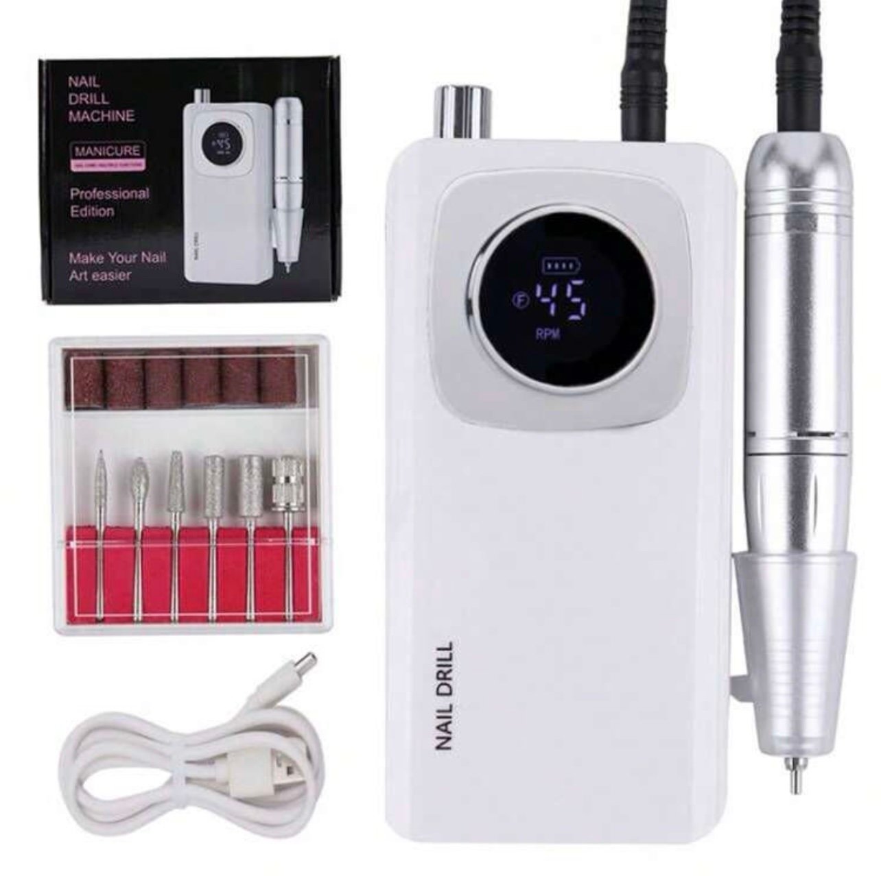 Nueva lima de uñas eléctrica profesional de 45000 RPM con modo de pausa, máquina de manicura, lijadora eléctrica de uñas para uñas de acrílico y de gel